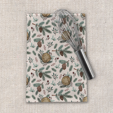 Winter Branches, Berries and Pine Cones Tea Towel